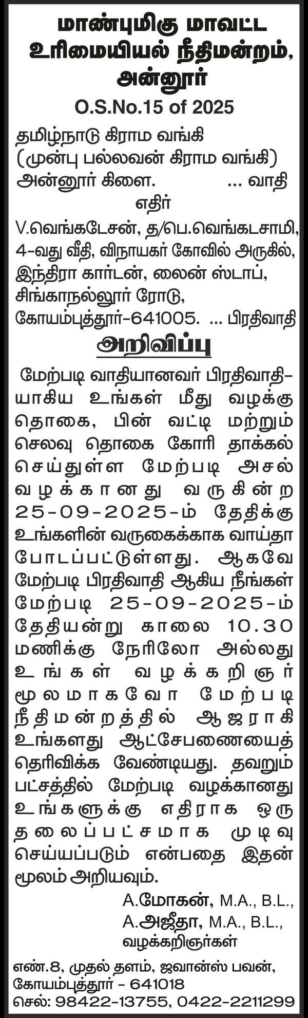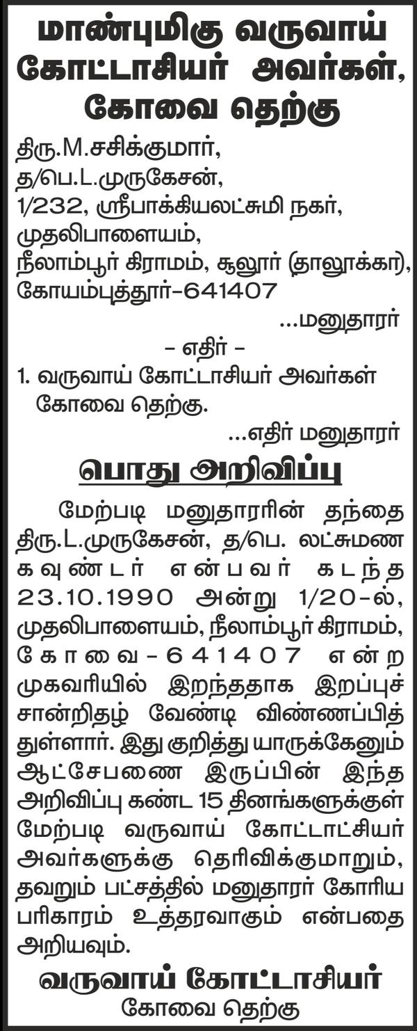 court notice ads for death certificate tamil
